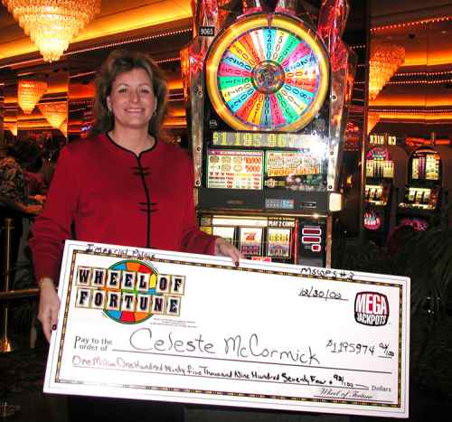 After staying up for several hours, Celeste McMormick tried to use her last credits before going to sleep. With only a few credits left, she hit the jackpot! Celeste McCormick said she had played about $100 in the Wheel of Fortune $5 MegaJackpot slot machine when she hit the three Wheel of Fortune symbols. "I had been lucky at the casino so I decided to play for the big money," the homemaker said. "I tried one machine and lost so I tried this machine." |