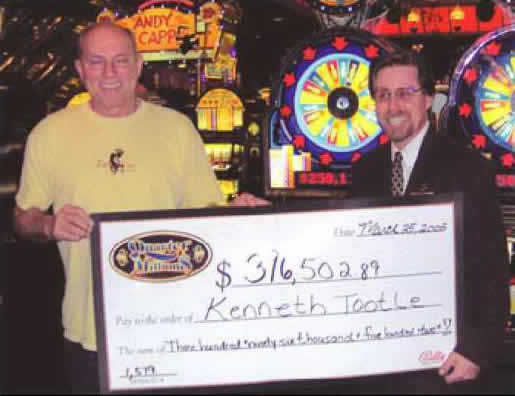 BILOXI, Mississippi - Kenneth R. Tootle won nearly $400,000 when the QuarterMillion$ wide-area progressive slot link hit. Tootle, who was playing a Lucky Wheel slot machine, won his jackpot at Treasure Bay Casino in Biloxi on March 25. From Yukon, Okla., Tootle won $396,502.89 on the progressive machine. This is the fourth time a QuarterMillion$ slot has hit in Mississippi. Bally Gaming and Systems manufacture the slot machines. Resetting at $250,000, the new QuarterMillion$ progressive link offers one of the highest minimum progressive jackpots for a three-quarter, instant-pay slot. The initial deployment